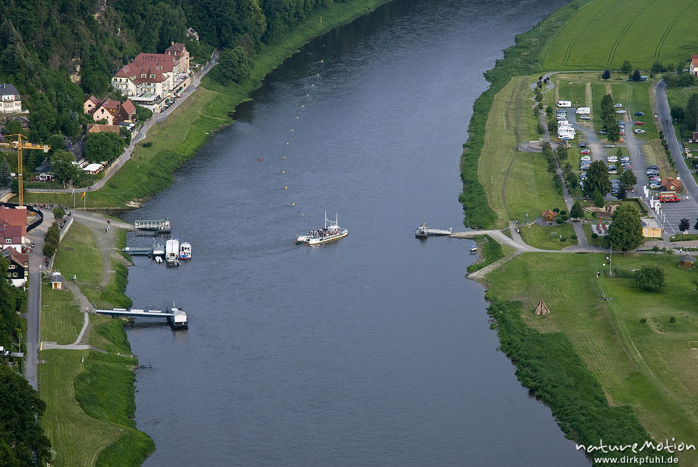 Fähre bei Rathen, Elbe, Blick von der Bastei Rathen, Deutschland