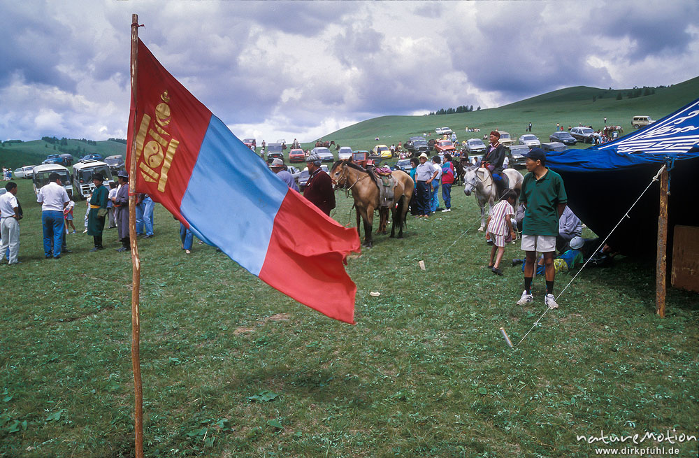 Fahne der Mongolei auf dem Festplatz Ulaanbaatar - Ulan Bator, Mongolei