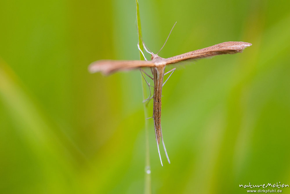 Federmotte (Familie), Emmelina monodactyla, 	Federmotten (Pterophoridae), Tier seitlich, an Grashalm, Grenzstreifen der ehemaligen deutsch-deutschen Grenze, A nature document - not arranged nor manipulated, Hitzelrode, Deutschland