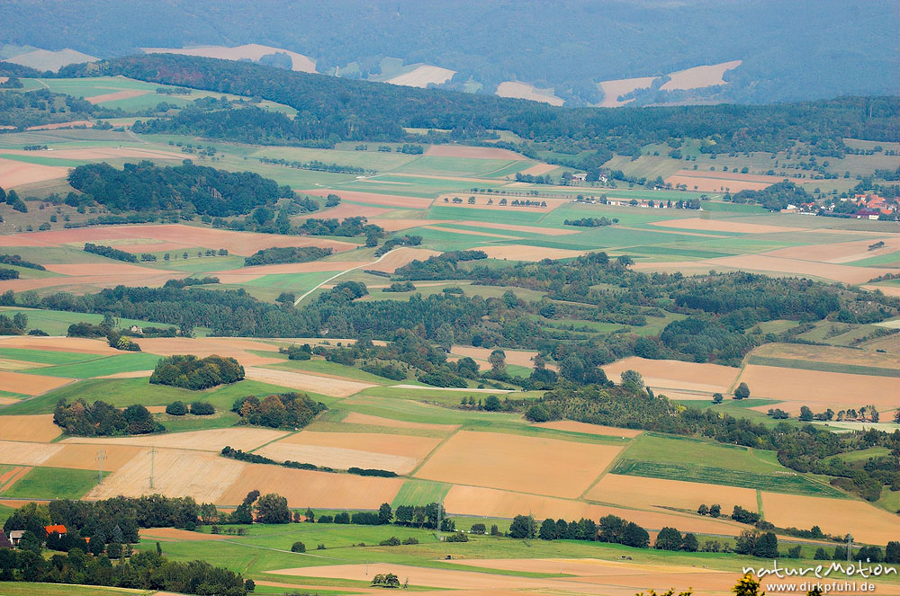 Felder und Ackerflächen im Herbst, Blick vom Hohen Meißner nach Osten, Teil eines Panoramas Hoher Meißner, Deutschland