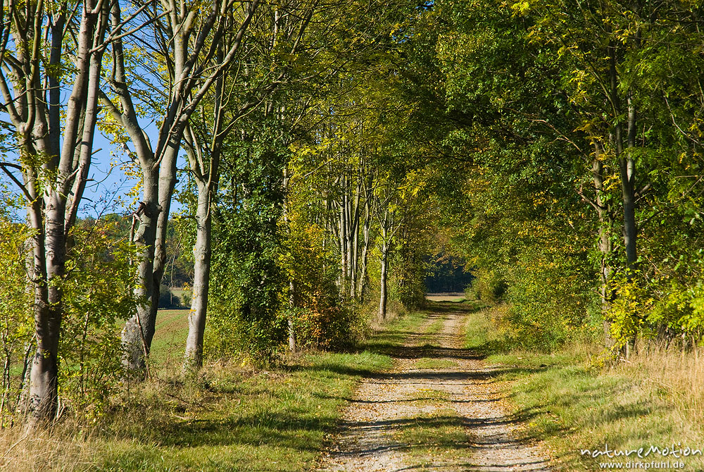 Feldweg, gesäumt von Bäumen, Allee, Tunnel, Westerwald, Göttingen, Deutschland
