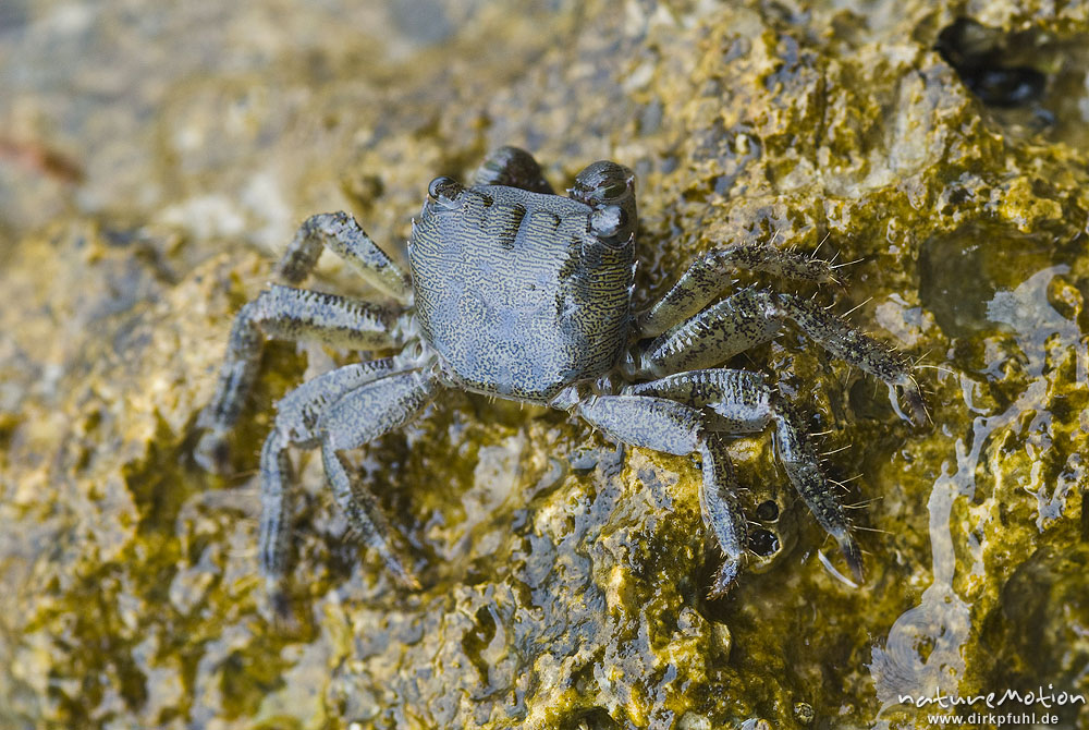 Felsenkrabbe, Rennkrabbe, Pachygrapsus marmoratus, Quadratkrabben (Grapsidae), auf Felsen an der Küste, Campingplatz Baldarin, Cres, Kroatien
