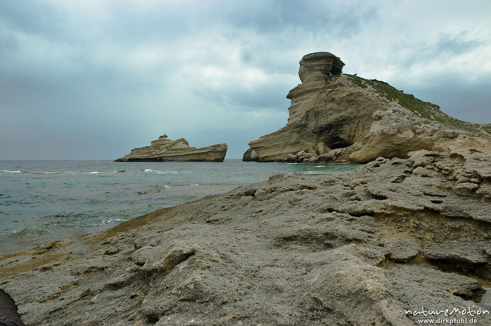Felsküste mit verwitterten Kalksteinfelsen, Capo Pertusato, Korsika, Frankreich