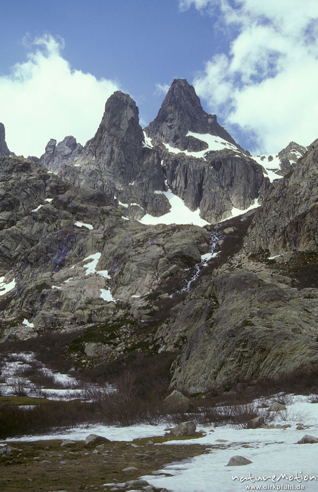 Felszinnen über Lac de Melo und Lac de Capitello, Korsika, Frankreich