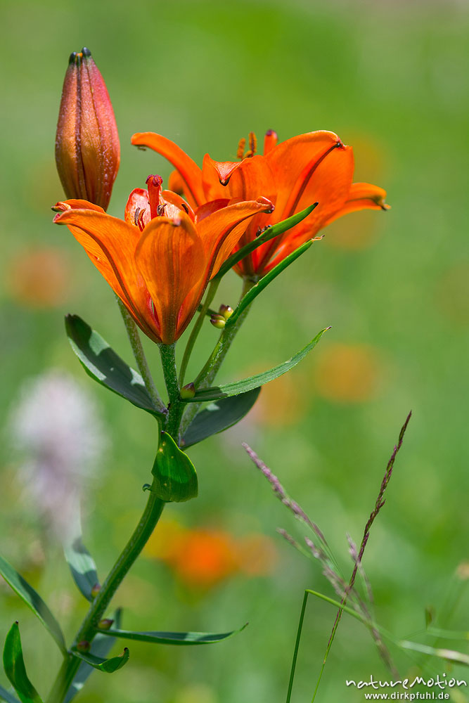 Feuer-Lilie, Lilium bulbiferum, Liliengewächse (Liliaceae),blühende Pflanzen, Wiese am Schaferter Leger, Tschamintal, Dolomiten, Völs am Schlern, Südtirol, Italien