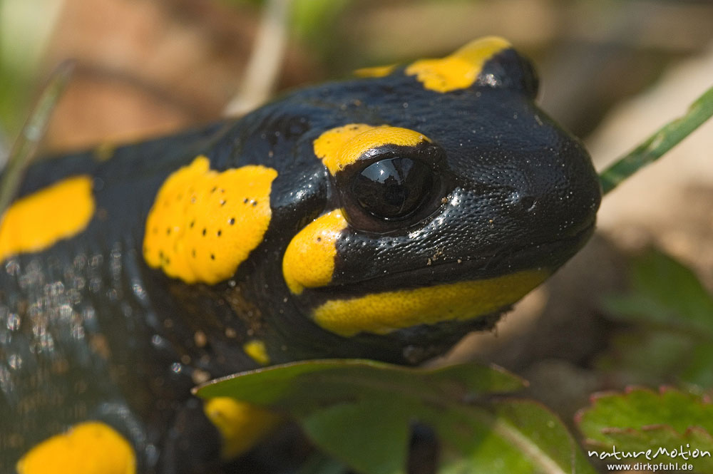 Feuersalamander, Salamandra salamandra, Salamandridae, in Bach, Lillachtal, Deutschland