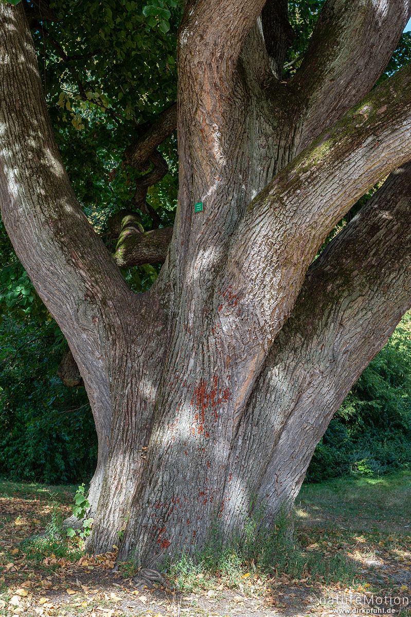 Feuerwanze, Pyrrhocoris apterus, Pyrrhocoridae, große Kolonie an Linde, Botanischer Garten, Frankfurt a.M., Deutschland