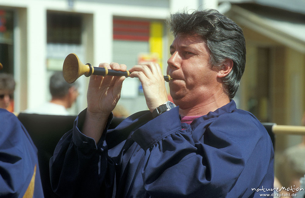 Flötenspieler, Fest mit traditionellen Kostümen, Umzug, Bretagne, Frankreich