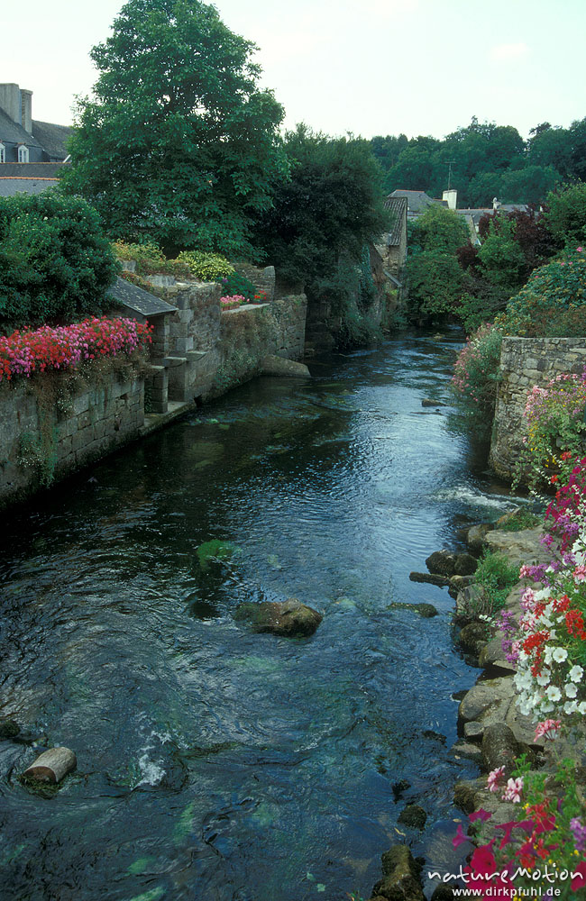 Flusslauf des Aven durch Pont-Aven, Mauern, Gärten, Bretagne, Frankreich