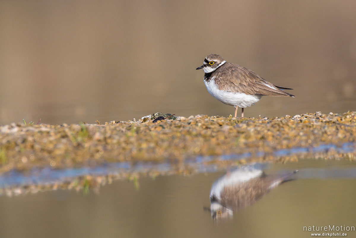 Flussregenpfeifer, Charadrius dubius, Regenpfeifer (Charadriidae), Tier rastet auf Kiesbank, Rosdorfer Baggersee, Göttingen, Deutschland