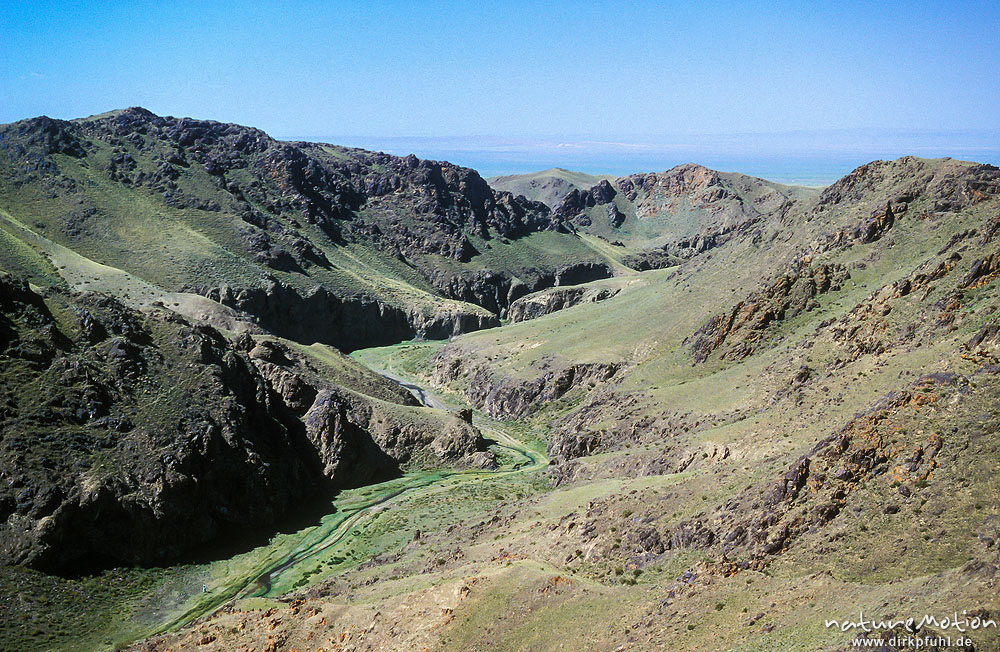 Flu?tal durch schwarzgebrannten Fels, Gurwan Saichan Berge ,
