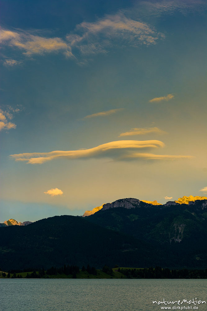 Fönfische, Lenticularis Wolken, Abendlicht am Forggensee, Füssen, Deutschland