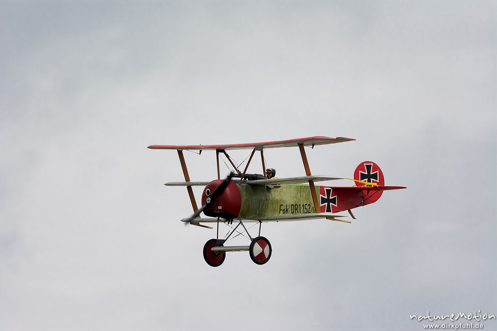 Fokker Dr.I Dreidecker, Flugmodell im Flug, Kunstflug, Mega Flugshow 2013 des MSV Condor Göttingen e, Göttingen, Deutschland