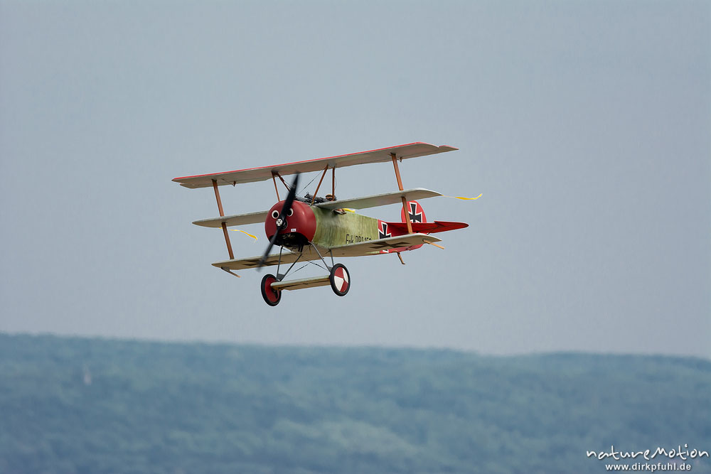 Fokker Dr.I Dreidecker, Flugmodell im Flug, Kunstflug, Mega Flugshow 2013 des MSV Condor Göttingen e.V., Göttingen, Deutschland