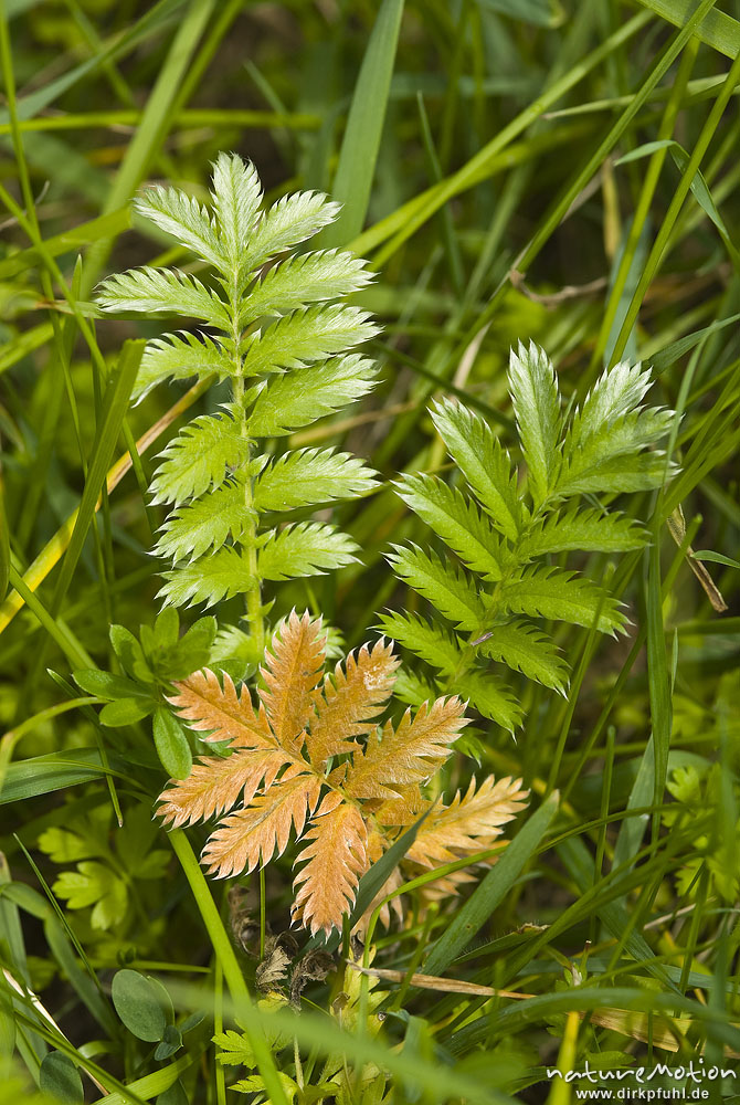 Gänse-Fingerkraut, Potentilla anserina, Rosengewächse (Rosaceae), grüne und braune Blätter, Kerstlingeröder Feld, Göttingen, Deutschland
