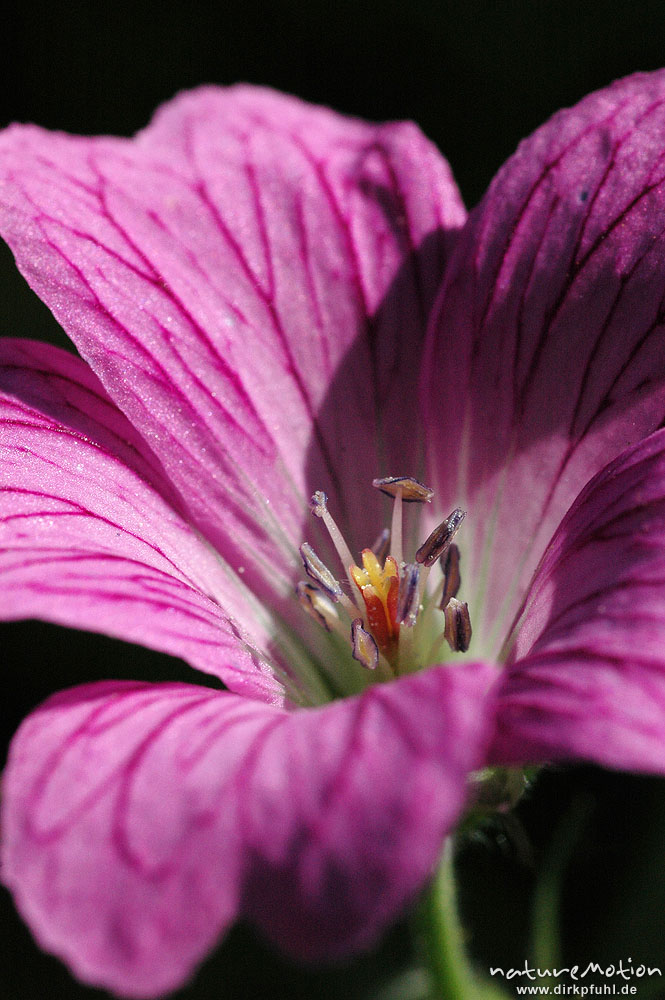 Garten-Geranium, Geranie, Geranium spec., Geraniaceae, Blüte mit Staubfäden und Nabe Göttingen, Deutschland