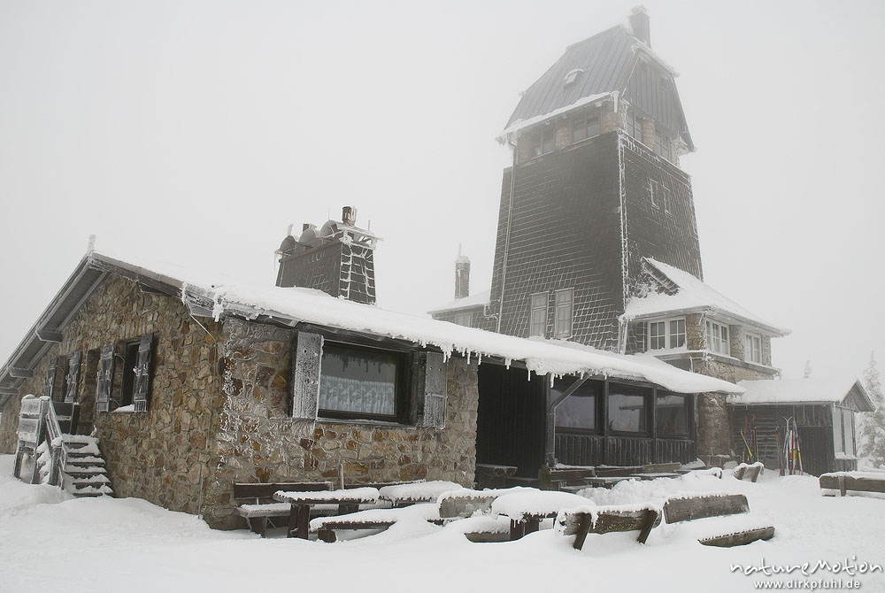 Gaststätte Haus Kühnenburg, tief verschneit, Nebel, Harz, Deutschland