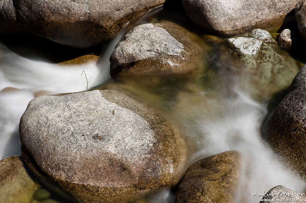 Gebirgsbach mit großen Felsen, Restonica-Tal Korsika, Frankreich