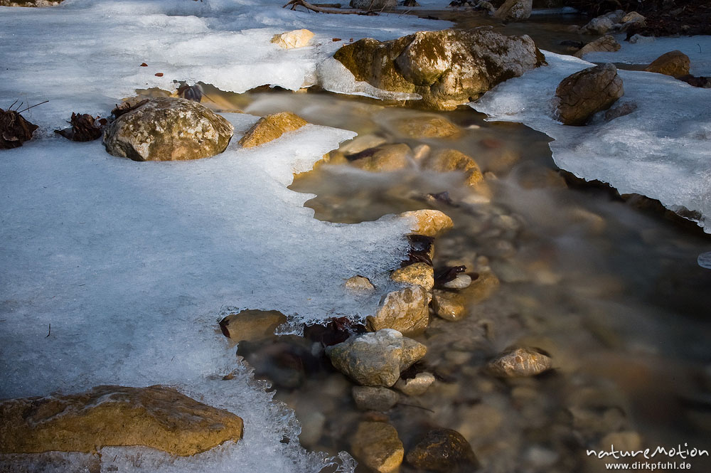 Gebirgsbach, teilweise zugefroren, Königsbach Königssee, Deutschland