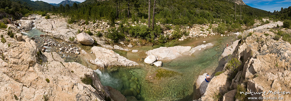 Gebirgsbach zwischen Felsen, Tal des Cavo, Korsika, Frankreich