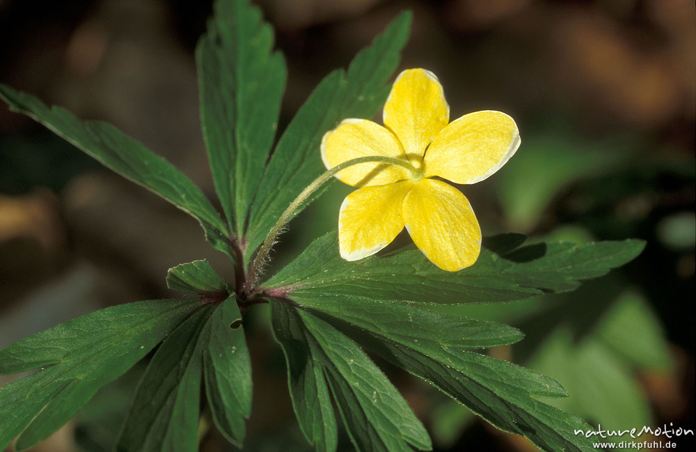 Gelbes Windröschen, Anemone ranunculoides, Blüte und Blätter, Göttinger Wald, Göttingen, Deutschland