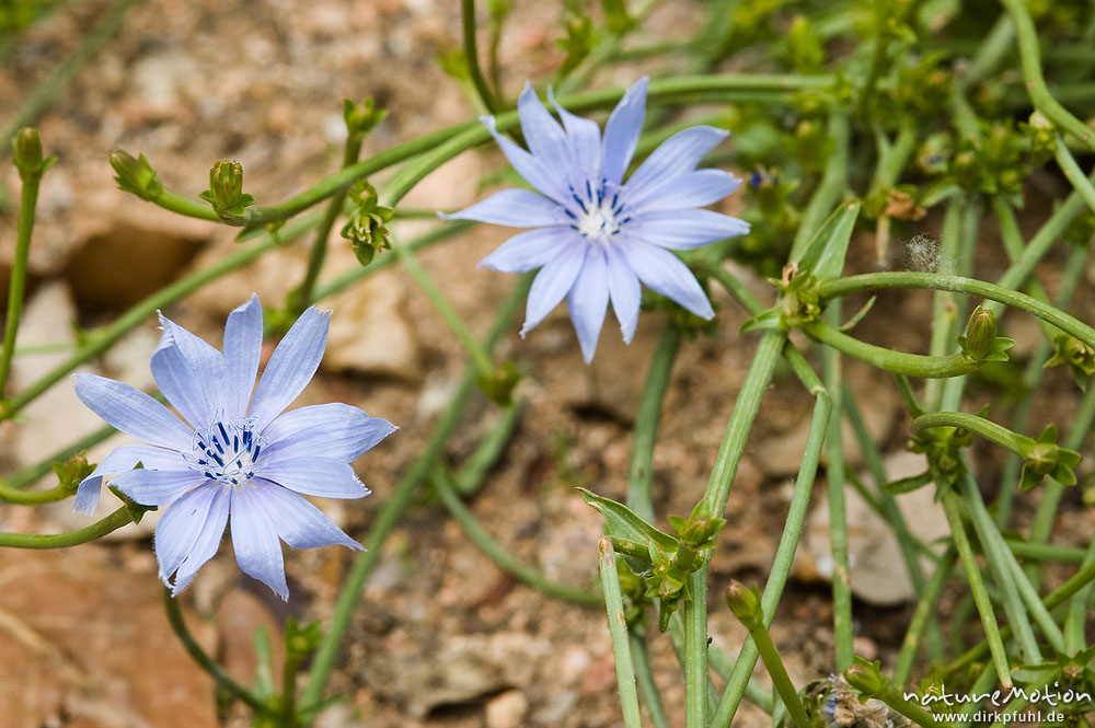 Gemeine Wegwarte, Cichorium intybus, Asteraceae, Blüten und Stengel, Asciaghjiu Korsika, Frankreich