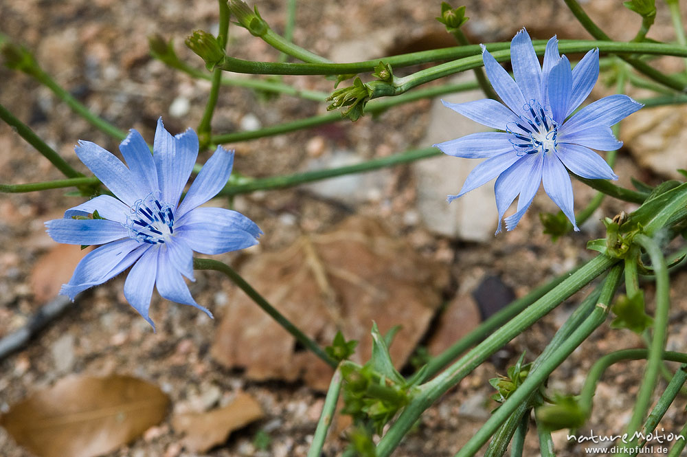 Gemeine Wegwarte, Cichorium intybus, Asteraceae, Blüten und Stengel, Asciaghjiu, Korsika, Frankreich