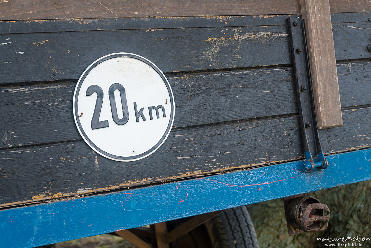 Geschwindigkeitsschild 20 km, Schild weist auf Höchstgeschwindigkeit des Fahrzeugs hin, Göttingen, Deutschland