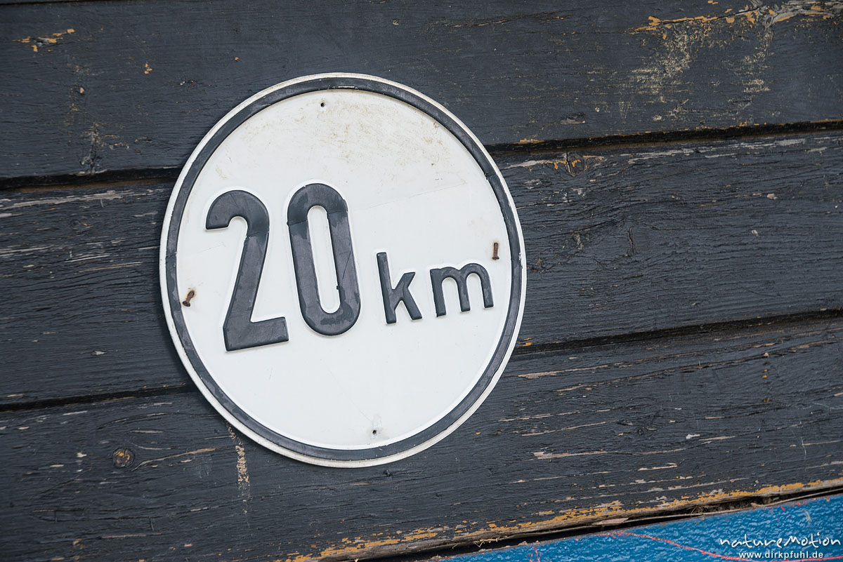 Geschwindigkeitsschild 20 km, Schild weist auf Höchstgeschwindigkeit des Fahrzeugs hin, Göttingen, Deutschland