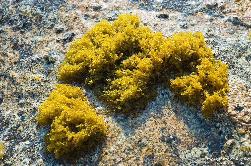 Gewellter Darmtang, Enteromorpha linza, Ulvaceae, Chlorophyta, Algen auf Felsen unmittelbar an der W, ,