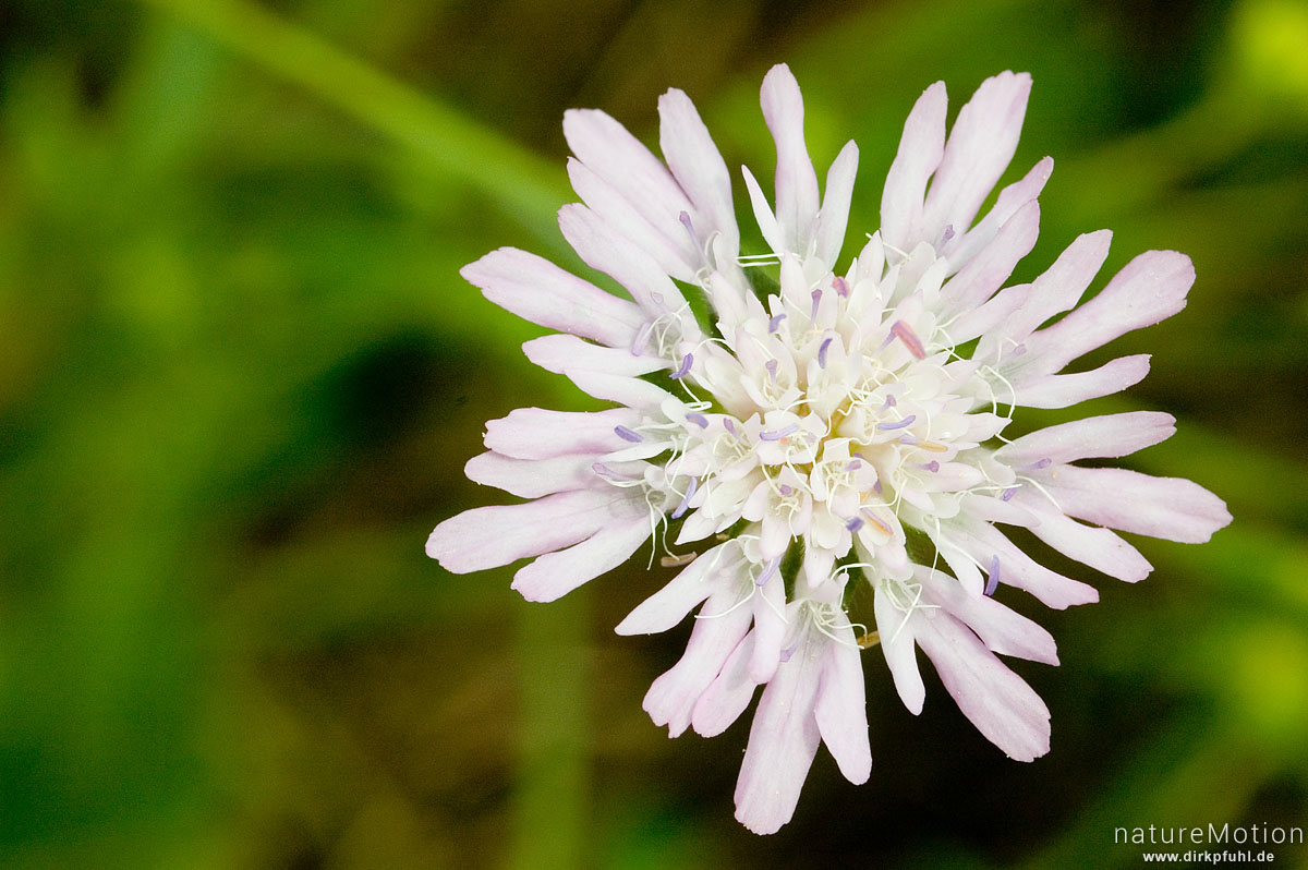 Gewöhnliche Einjährige Witwenblume, Knautia integrifolia, 	Geißblattgewächse (Caprifoliaceae),Blütenstand, Wegrand, Plage d'Arrone, Korsika, Frankreich