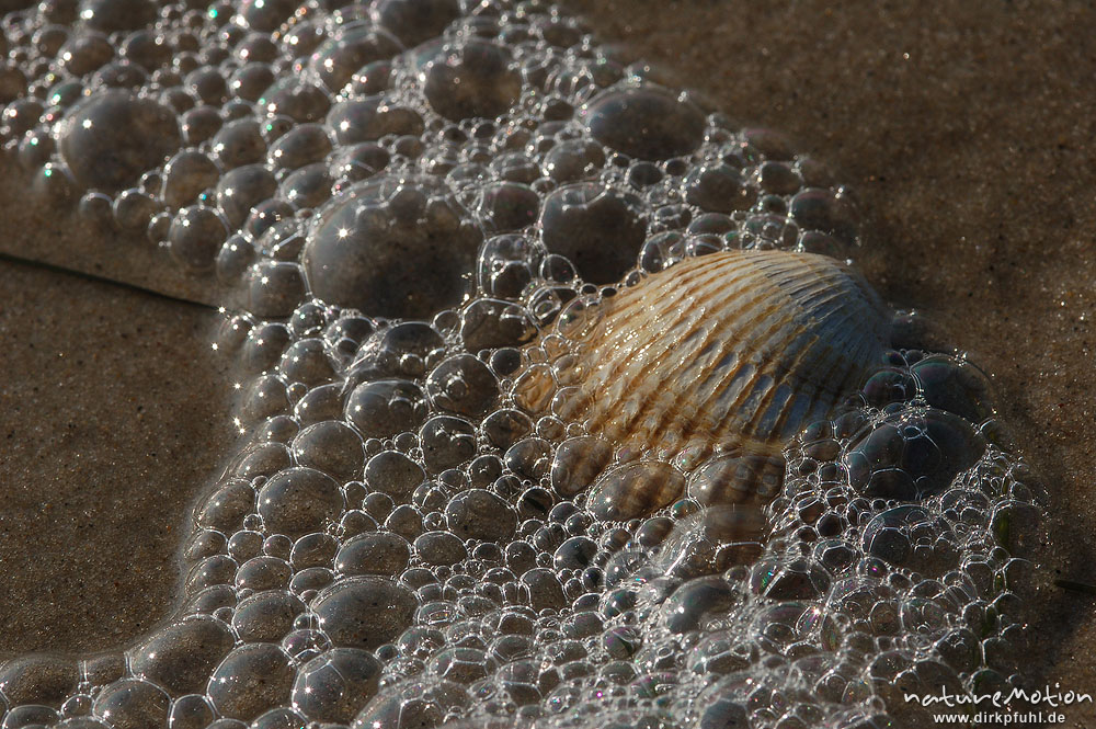 Gewöhnliche Herzmuschel, Cerastoderma edule, Cardiidae, Herzmuschelschale und Meerschaum, Amrum Amrum, Deutschland