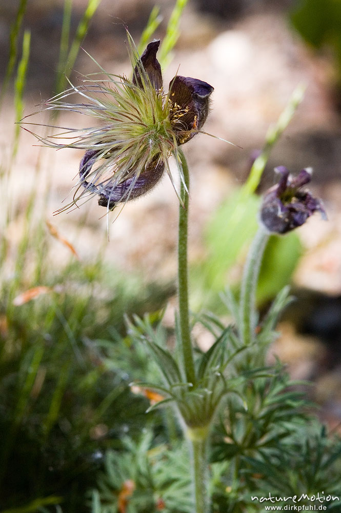 Gewöhnliche Kuhschelle, Pulsatilla vulgaris, Ranunculaceae, Pflanze mit Fruchtständen Bärenpark Worbis, Deutschland