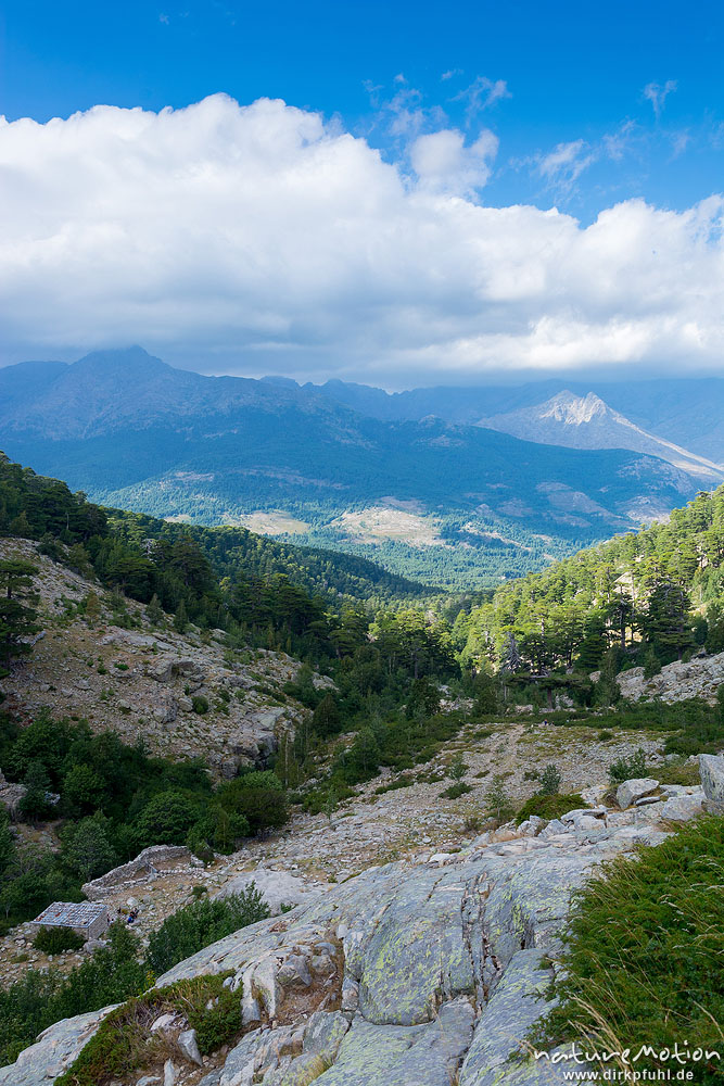 Gipfel unter Wolken, Blick über das Niolu, Bergerie de Colga, Wanderung Forsthaus Poppaghia zum Lac de Nino, Korsika, Frankreich