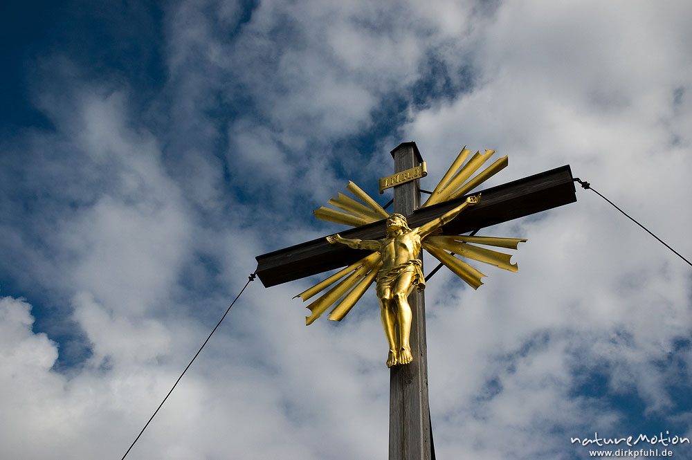 Gipfelkreuz mit vergoldeter Christus-Statue, Wank Garmisch-Partenkirchen, Deutschland