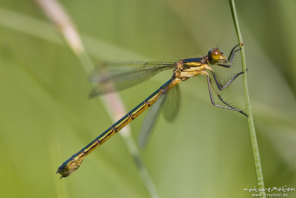 Glänzende Binsenjungfer, Lestes dryas, Lestidae, Weibchen, Quellteich Kerstlingeröder Feld Göttingen, Deutschland