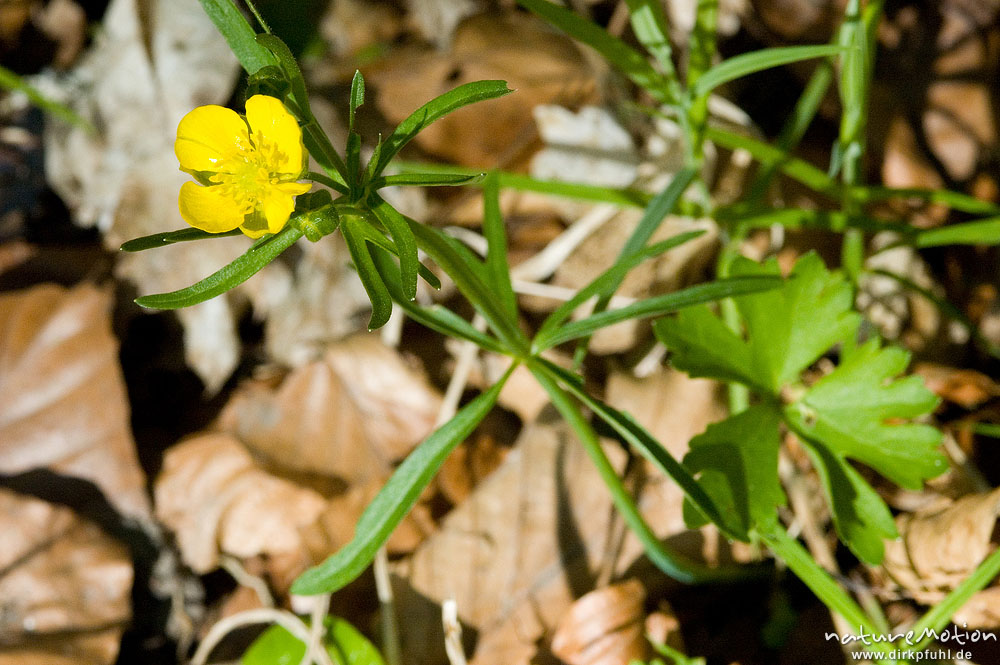 Gold-Hahnenfuß, Ranunculus auricomus, Ranunculaceae, Blüte, Stengel und Grundblatt, Göttingen, Deutschland