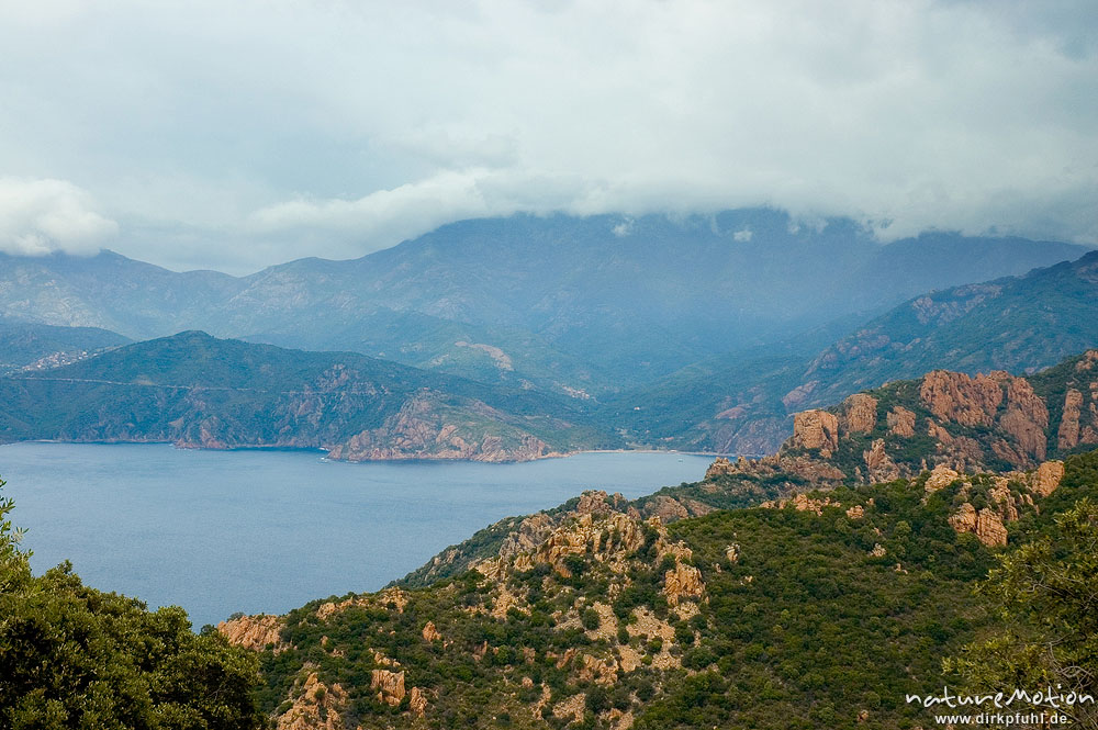 Golf von Porto und Calanche bei Piana, Regenwolken, Korsika, Frankreich