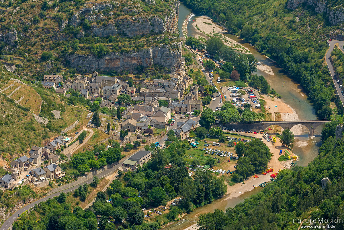 Gorges du Tarn, Blick auf La Malene vom Roc du Serne, La Malene, Frankreich