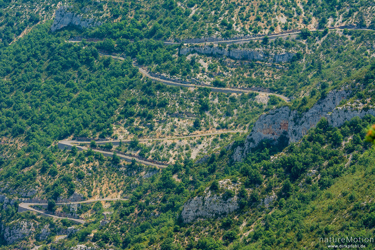 Gorges du Tarn, Strasse von La Malene auf die Causses Mejean, Serpentinen, Blick vom Roc du Serne, La Malene, Frankreich