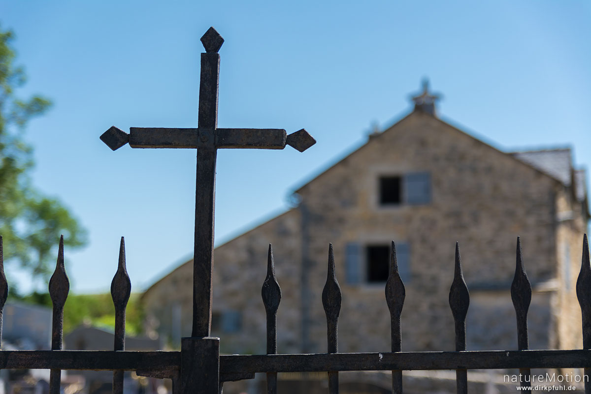 Grabkreuz, Kirche und Friedhof von Hures, Causees Mejean, Florac, Frankreich