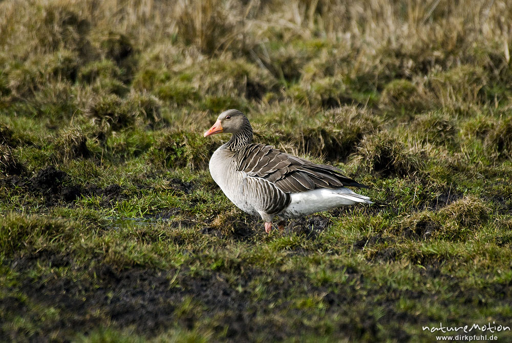 Graugans, Anser anser, Anatidae, Tier beim äsen, Günzer Wiesen, Groß Mohrdorf, Deutschland