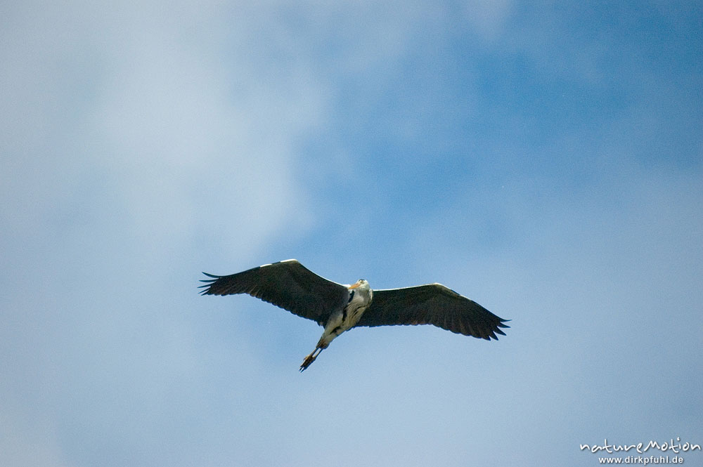 Graureiher, Ardea cinerea, Ardeidae, im Flug, Kiessee Göttingen, Deutschland