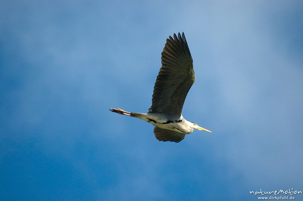 Graureiher, Ardea cinerea, Ardeidae, im Flug, Kiessee Göttingen, Deutschland