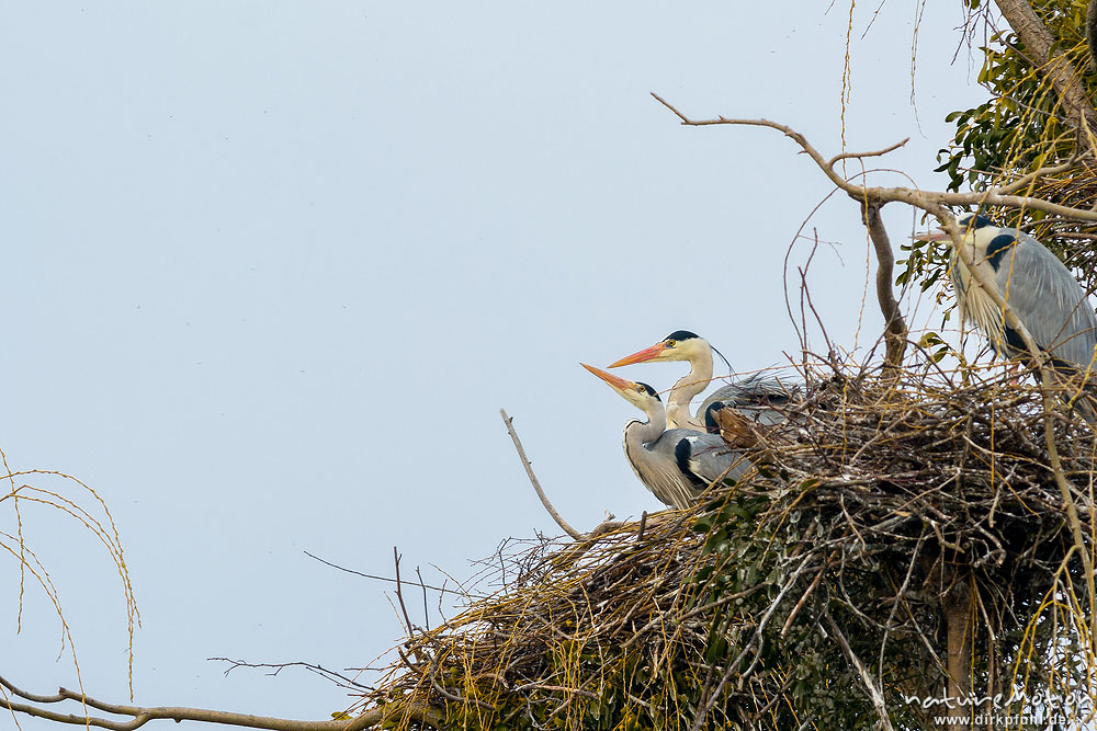 Graureiher, Ardea cinerea, Ardeidae, Paarung, Brutkolonie im Levinschen Park, A nature document - not arranged nor manipulated, Göttingen, Deutschland