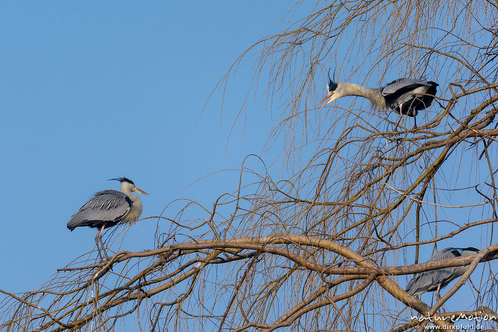 Graureiher, Ardea cinerea, Ardeidae, Streit, Brutkolonie, Levinscher Park, A nature document - not arranged nor manipulated, Göttingen, Deutschland