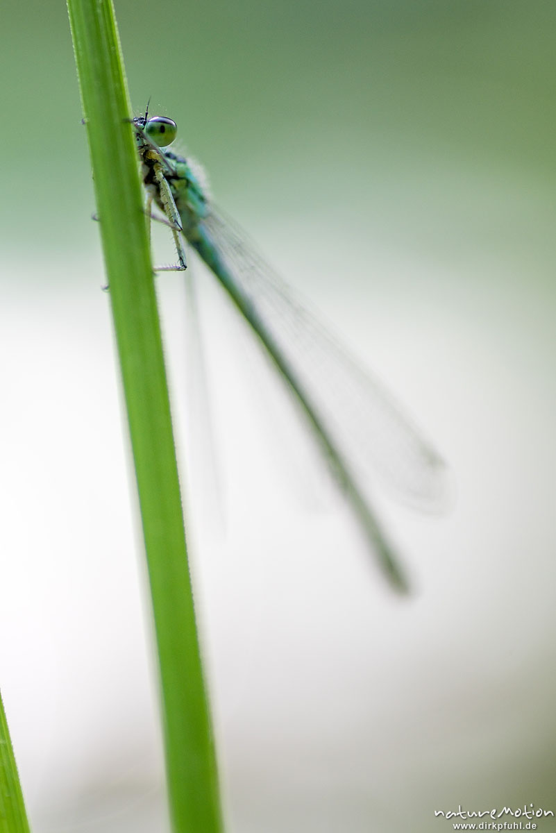Große Pechlibelle, Gemeine Pechlibelle, Ischnura elegans, Coenagrionidae, Weibchen, sitzt an Grashalm, Alter Botanischer Garten, Göttingen, Deutschland