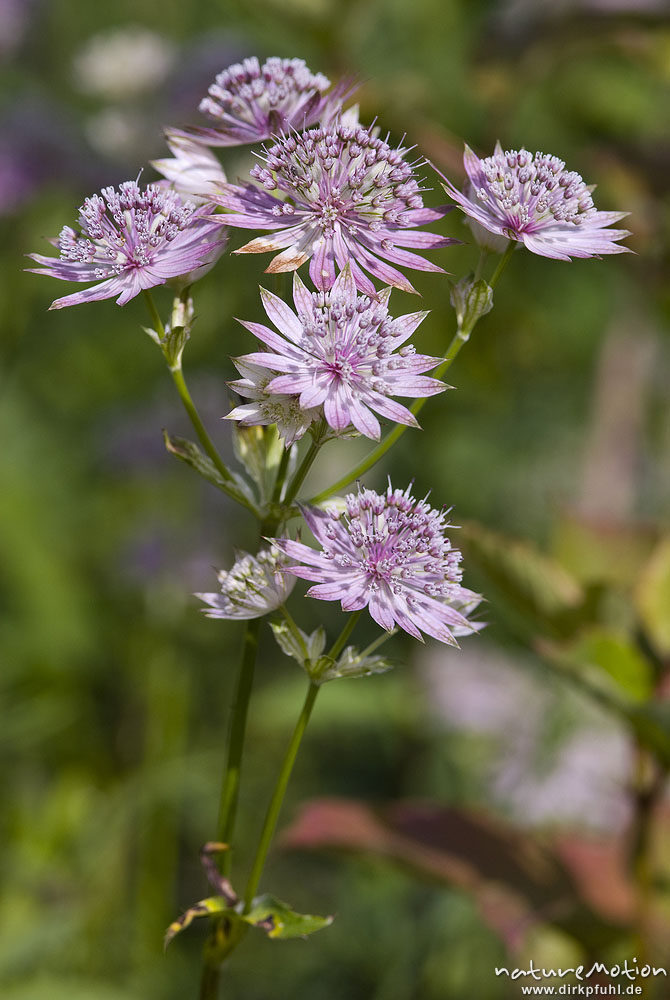 Große Sterndolde, Astrantia major, Doldenblütler (Apiaceae), Blütenstände, Bohinjer See Wocheiner See, Slowenien