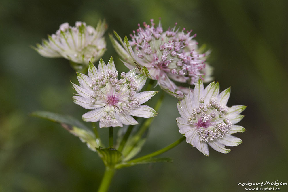 Große Sterndolde, Astrantia major, Doldenblütler (Apiaceae), Blütenstand, Mosnica-Tal Triglav-Nationalpark, Slowenien