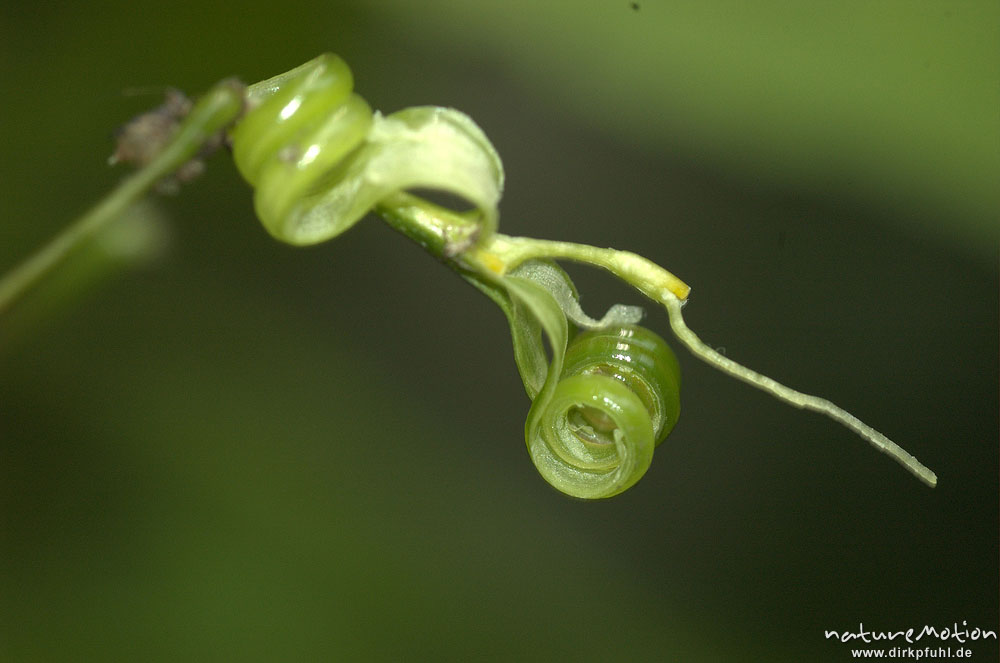 Großes Springkraut, Impatiens noli-tangere, Balsaminaceae, Fruchtkapsel nach dem Auswurf der Samen, Sprungmechanismus, Mecklenburger Seen, Deutschland